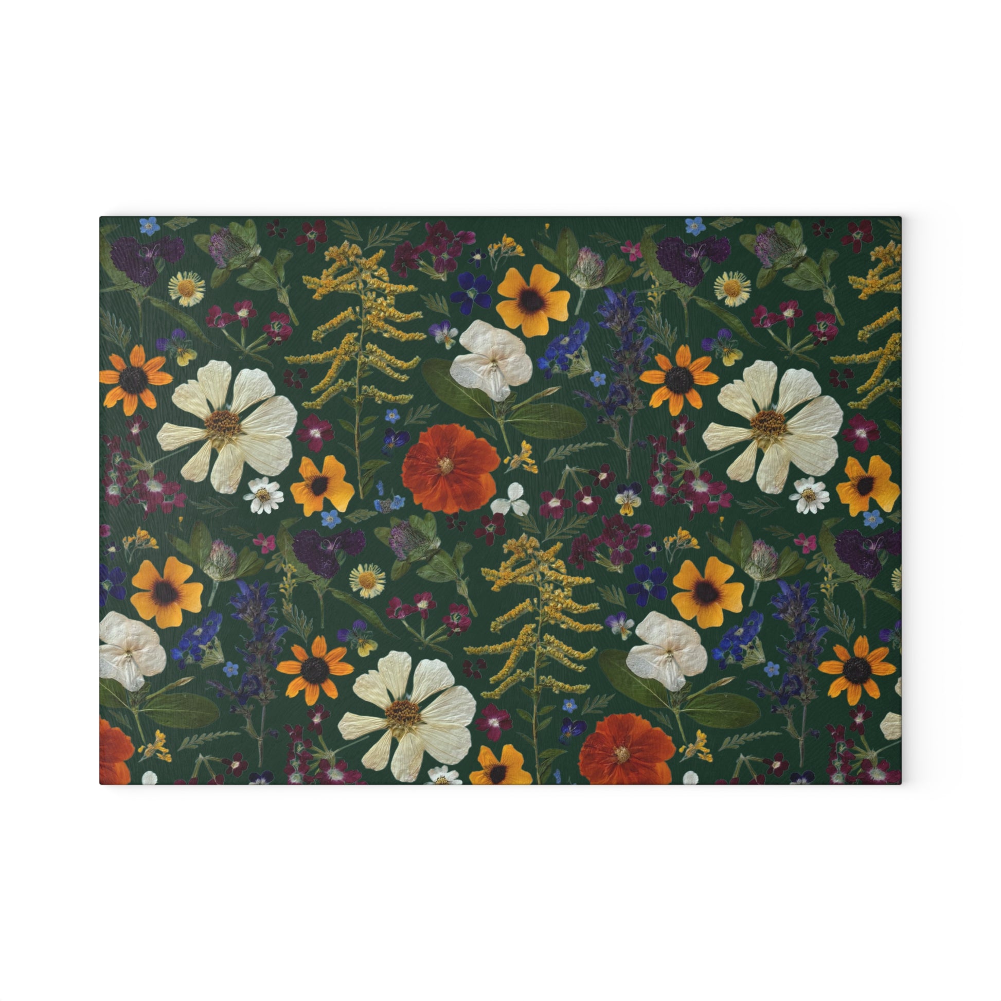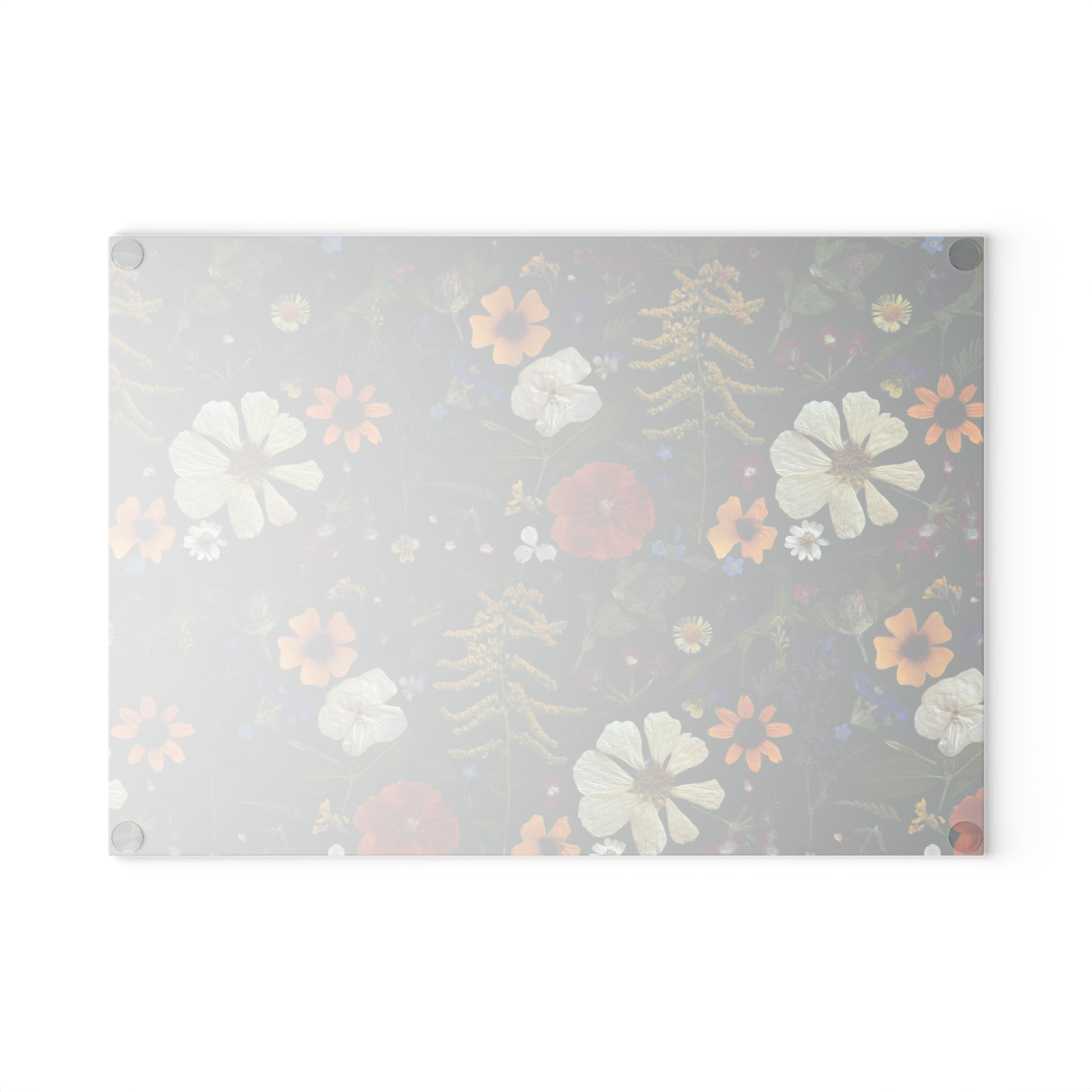 Bring a touch of character into any kitchen with this custom glass cutting board featuring a signature Magnolia Moon pressed flower design. Its tempered glass material is robust and helps prepare many a tasty meal for a long time to come. The textured surface makes it an ideal chopping, slicing, and dicing area. Available in one size: 8" x 11".