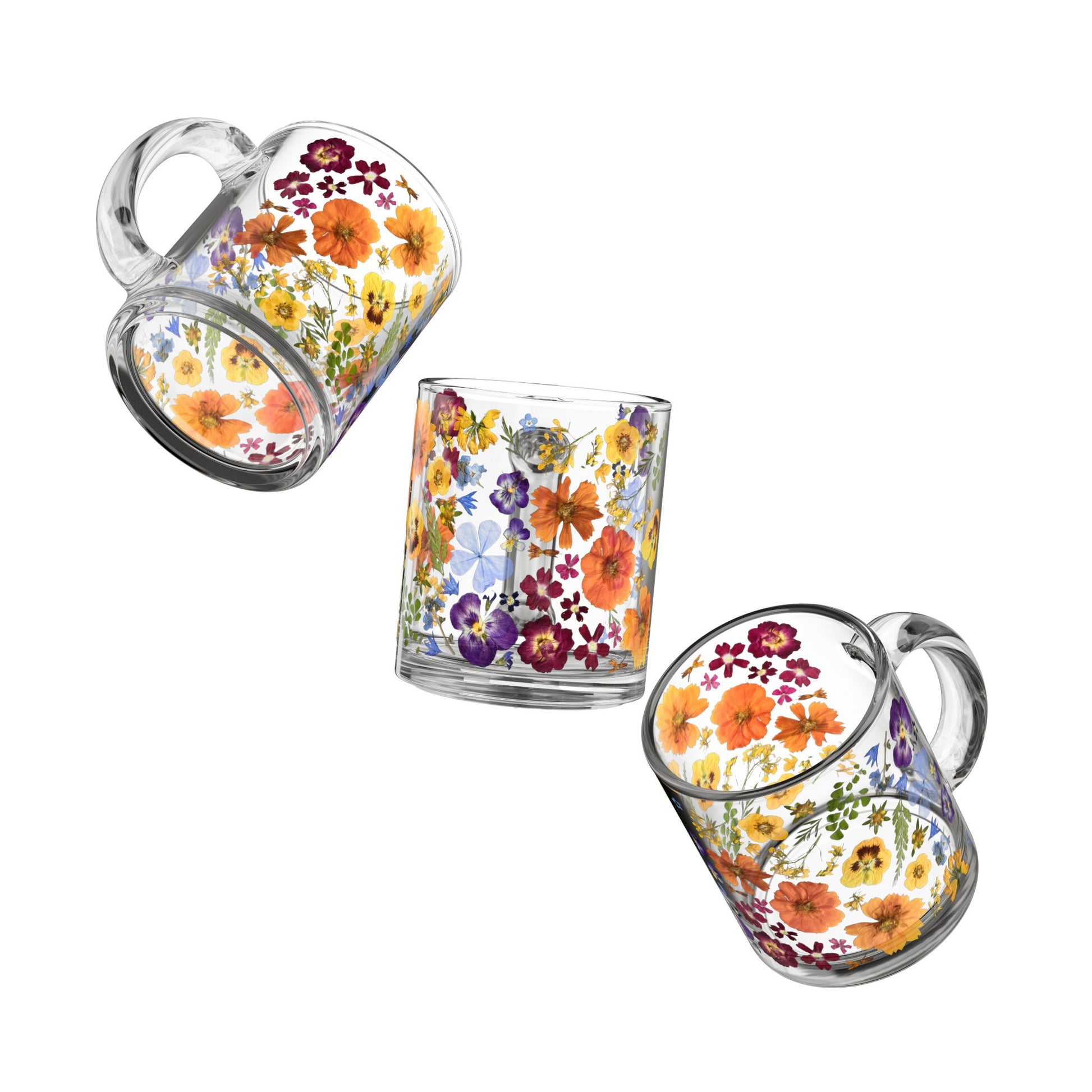 Start your mornings right with our sleek glass coffee mug featuring a Signature Magnolia Moon Pressed Flower Design. Made from durable, heat-resistant glass, this mug is as sturdy as it is stylish. With a comfortable, easy-grip handle and a generous 10-ounce capacity, it's perfect for savoring hot coffees, teas, or iced beverages. Add a touch of elegance to your drink and enjoy every sip with a view.