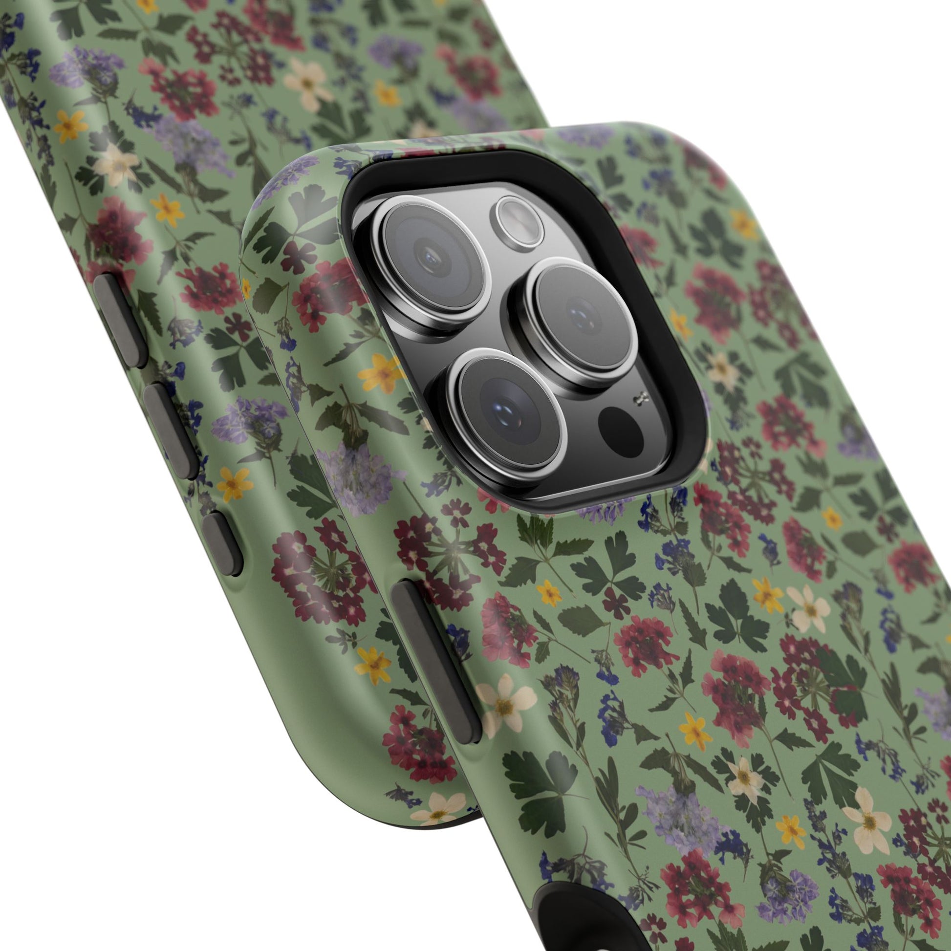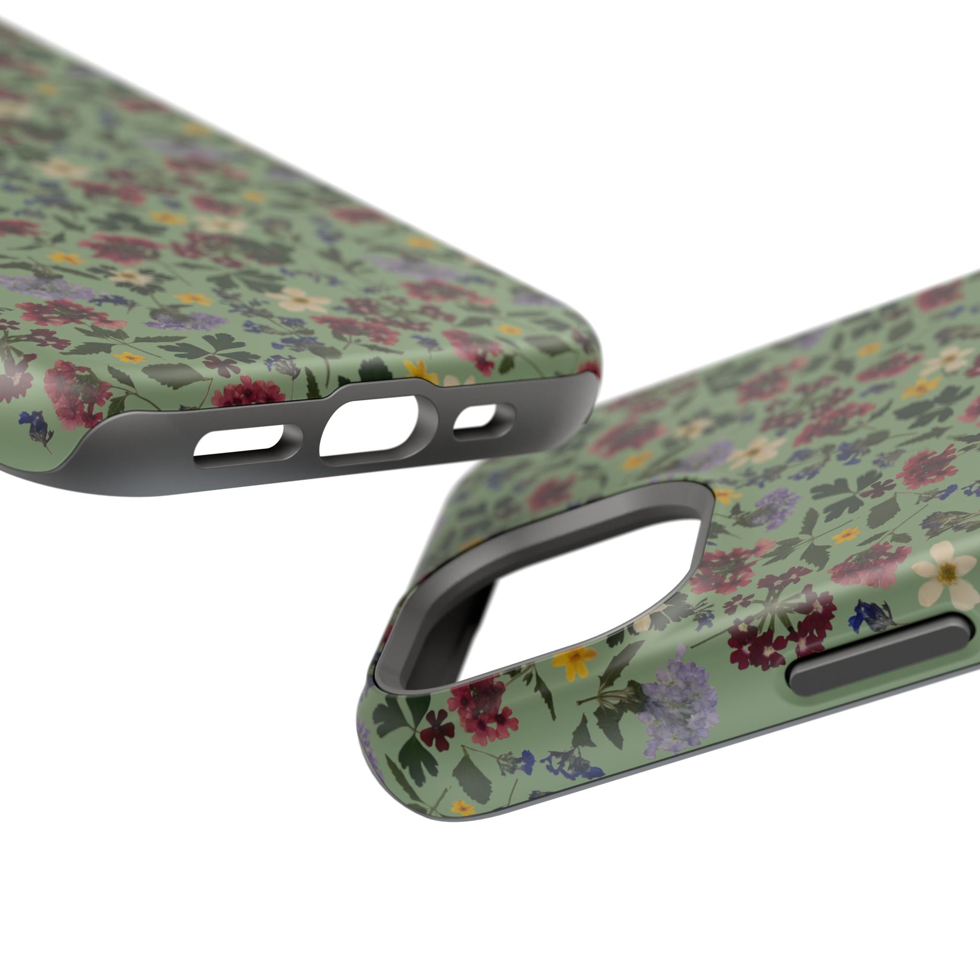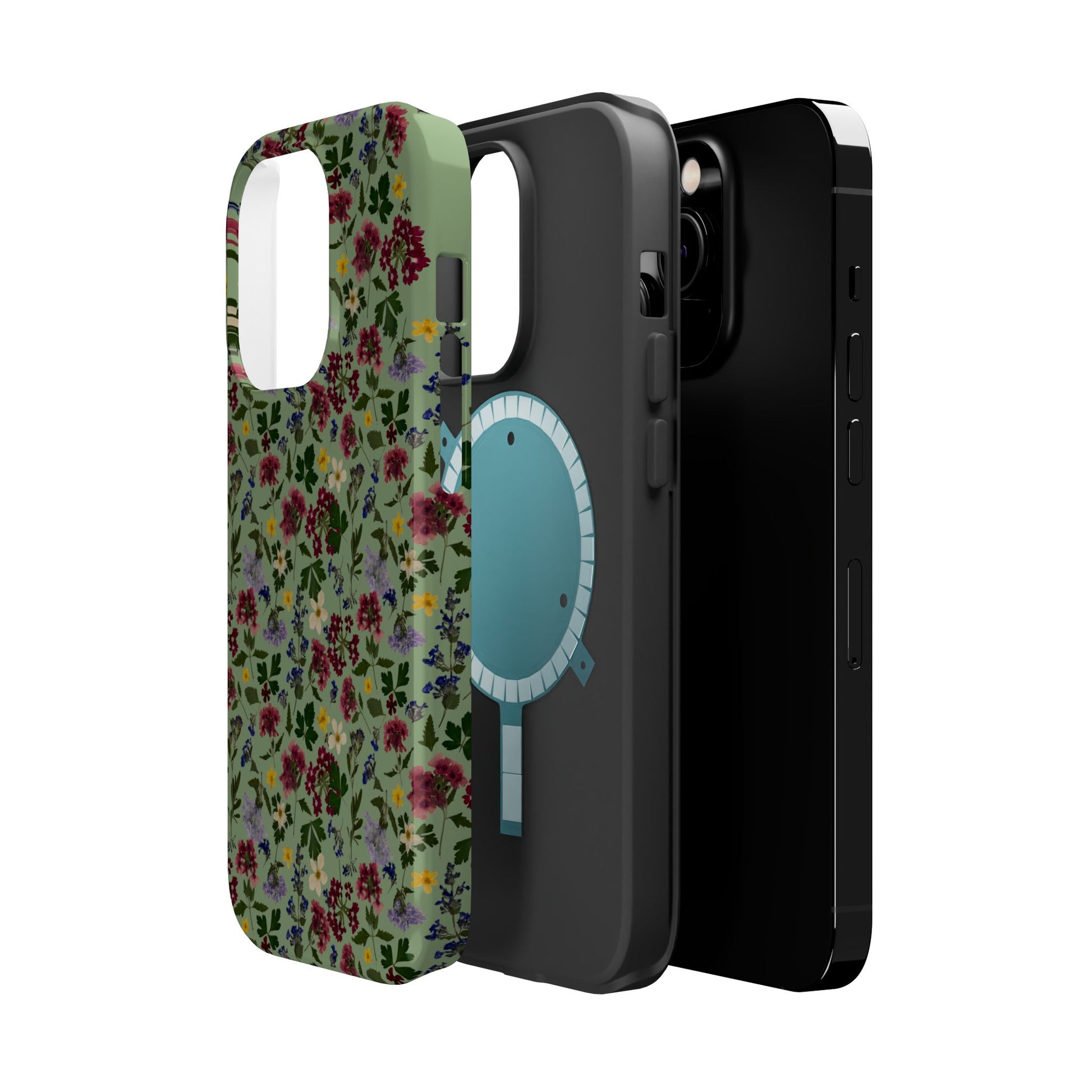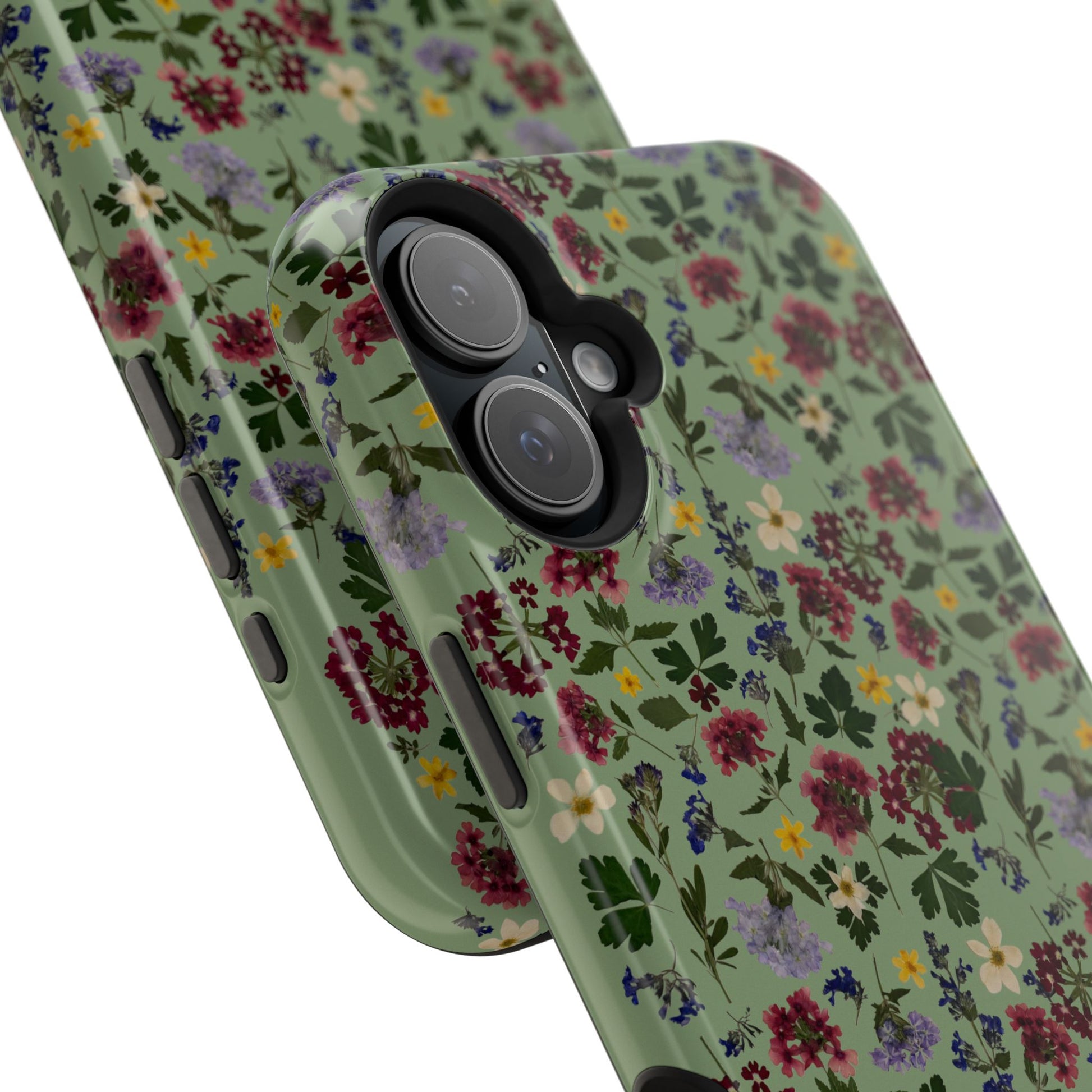 When aesthetics meet function, this magnetic tough case featuring a Signature Magnolia Moon Pressed Flower Design is born. Equipped with an outer polycarbonate shell and inner black TPU lining, this case delivers robust protection thanks to its durable, flexible, impact-resistant nature. Available in a matte or glossy finish, each case comes with an embedded magnet module that is compatible with MagSafeĀ® accessories and a stunning print that fully wraps around your case's exterior.