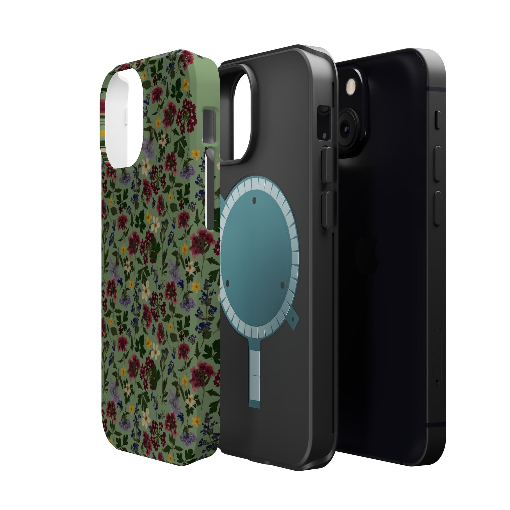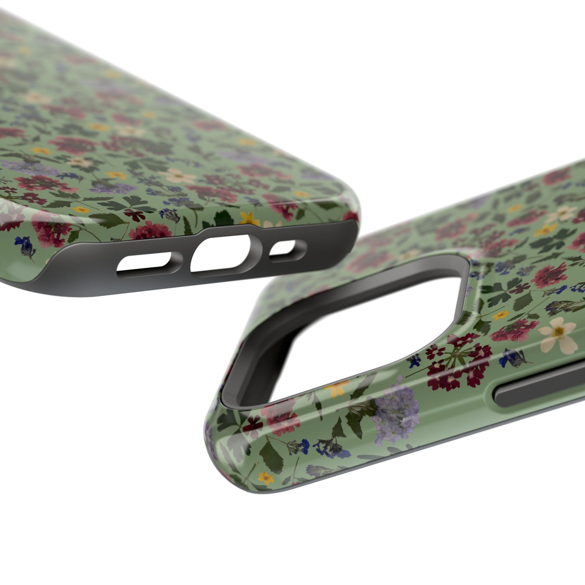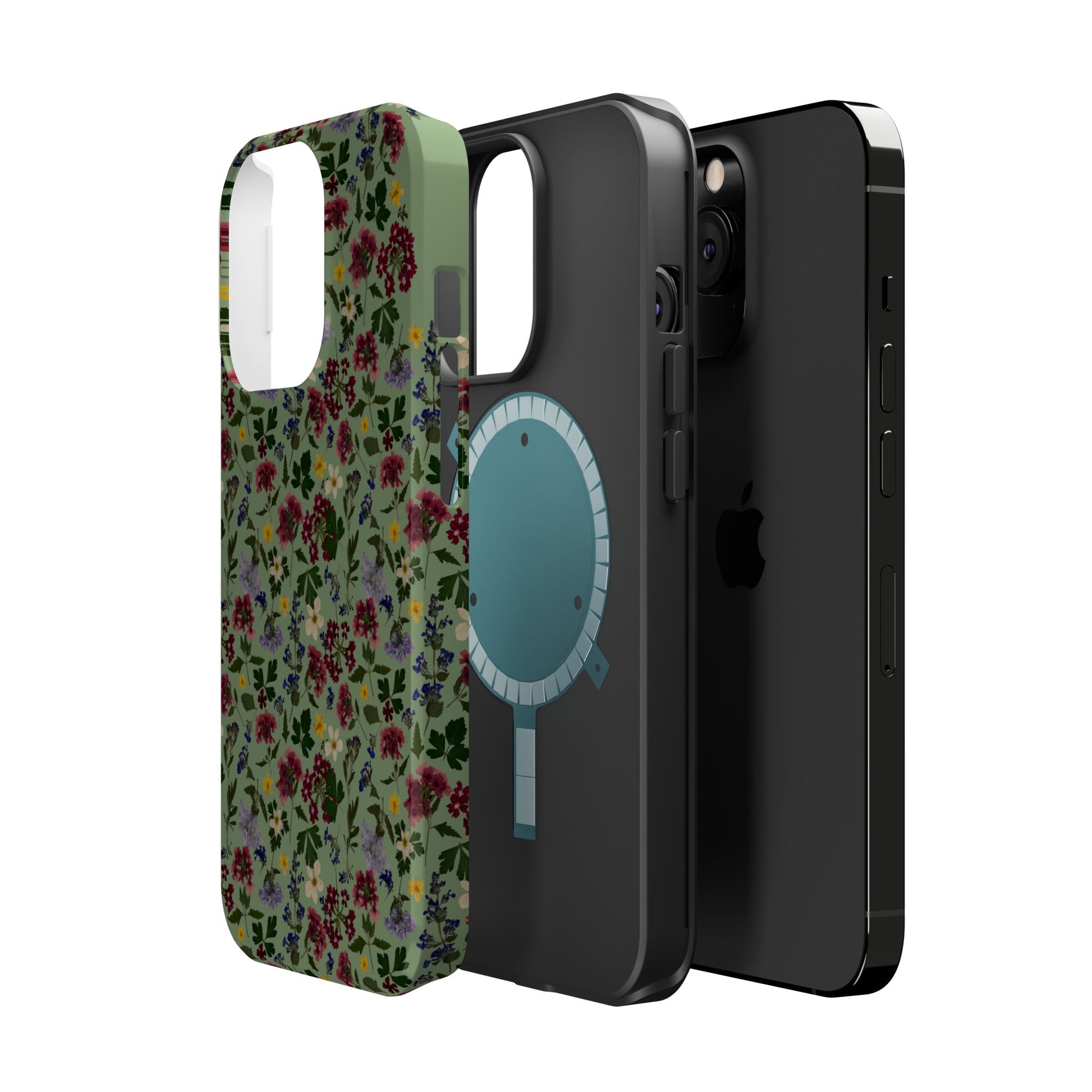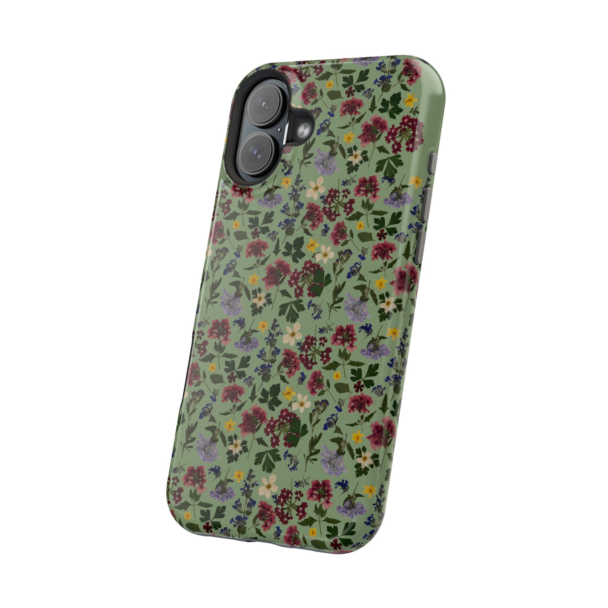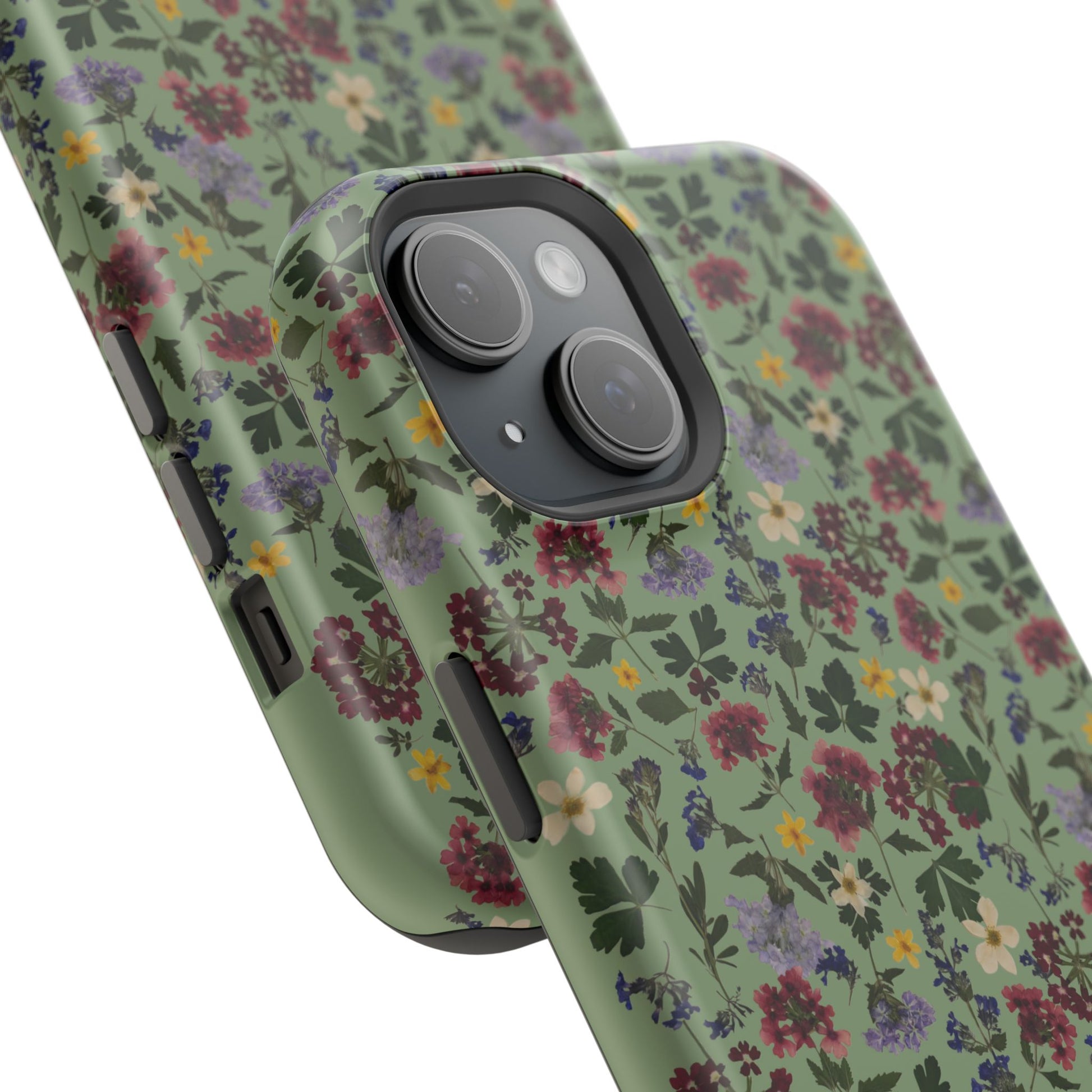 When aesthetics meet function, this magnetic tough case featuring a Signature Magnolia Moon Pressed Flower Design is born. Equipped with an outer polycarbonate shell and inner black TPU lining, this case delivers robust protection thanks to its durable, flexible, impact-resistant nature. Available in a matte or glossy finish, each case comes with an embedded magnet module that is compatible with MagSafeĀ® accessories and a stunning print that fully wraps around your case's exterior.