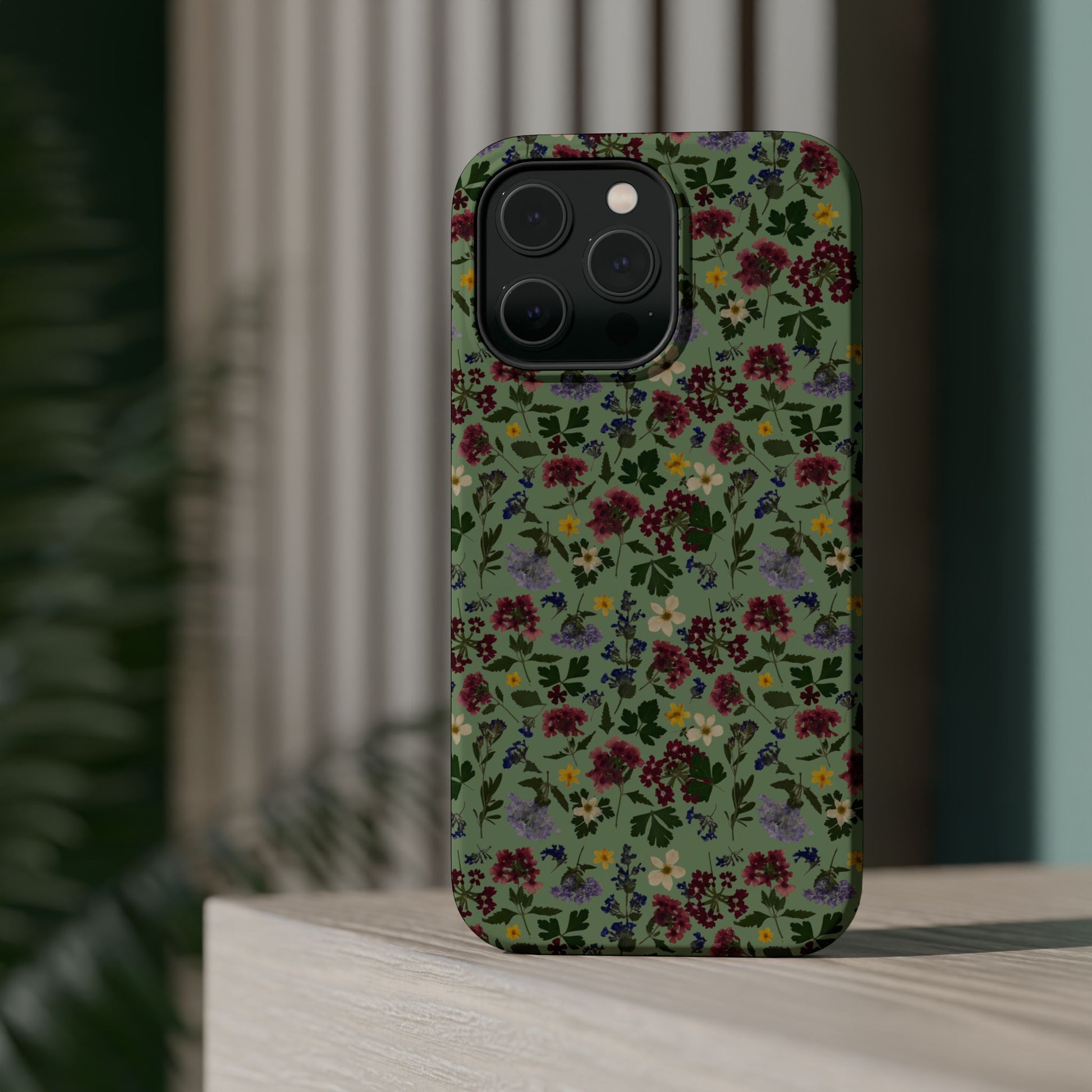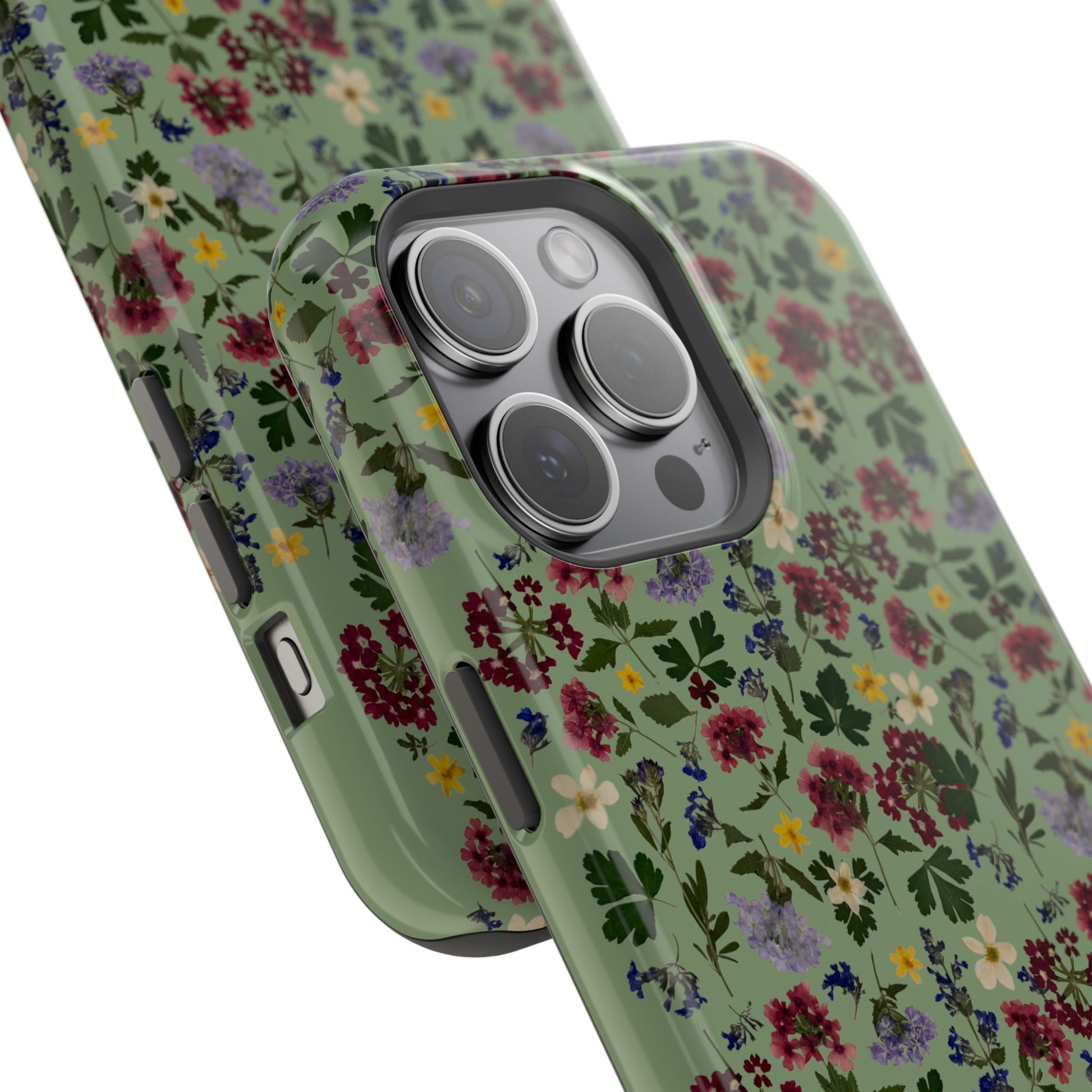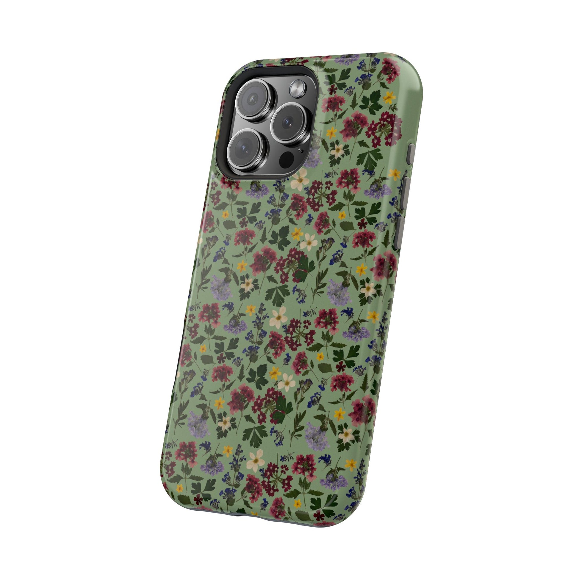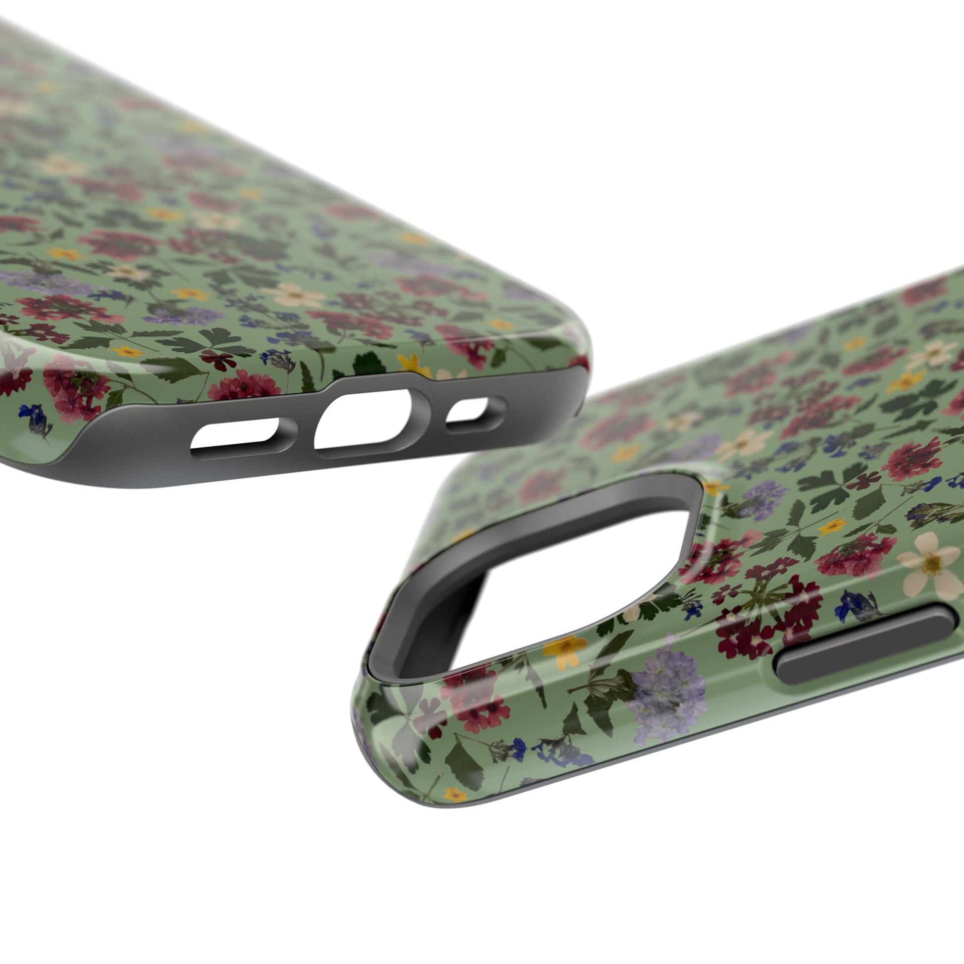 When aesthetics meet function, this magnetic tough case featuring a Signature Magnolia Moon Pressed Flower Design is born. Equipped with an outer polycarbonate shell and inner black TPU lining, this case delivers robust protection thanks to its durable, flexible, impact-resistant nature. Available in a matte or glossy finish, each case comes with an embedded magnet module that is compatible with MagSafeĀ® accessories and a stunning print that fully wraps around your case's exterior.
